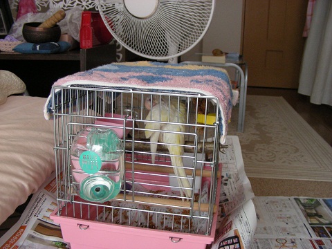 ピノコもポーラも互いに興味津々で、呼び鳴きしてますし、ピノコも落ち着かず、周りを飛び回ってます。
