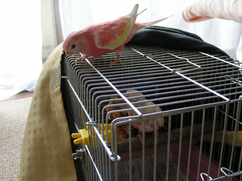 カゴの中だと嫌々ながら指にも乗るようになりました。