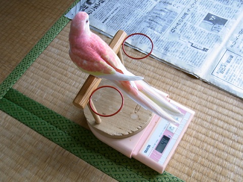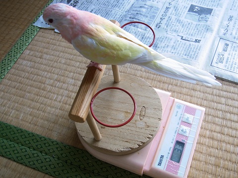 本来アキクサインコの♂なら50グラムオーバーってとこでしょうかね…