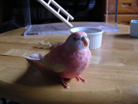 かわいい小松菜のプランターや手製のプレイジムまで用意して、いろいろと準備して待っていたので、さっそく朝に放鳥タイムを設けていたのですが、どうもぼんやりしたままで、いまいち意思の疎通が図れない。